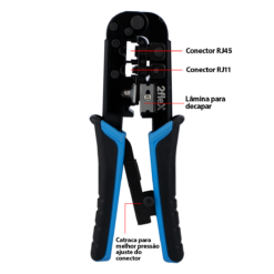 Alicate de Crimpar possui com corpo anatômico e conectorização de alta precisão. Com ele terá aumento de performance e estabilidade porque ele permite conexões perfeitas e estáveis, desenvolvido com a melhor ergonomia, materiais de alta qualidade e resistência.