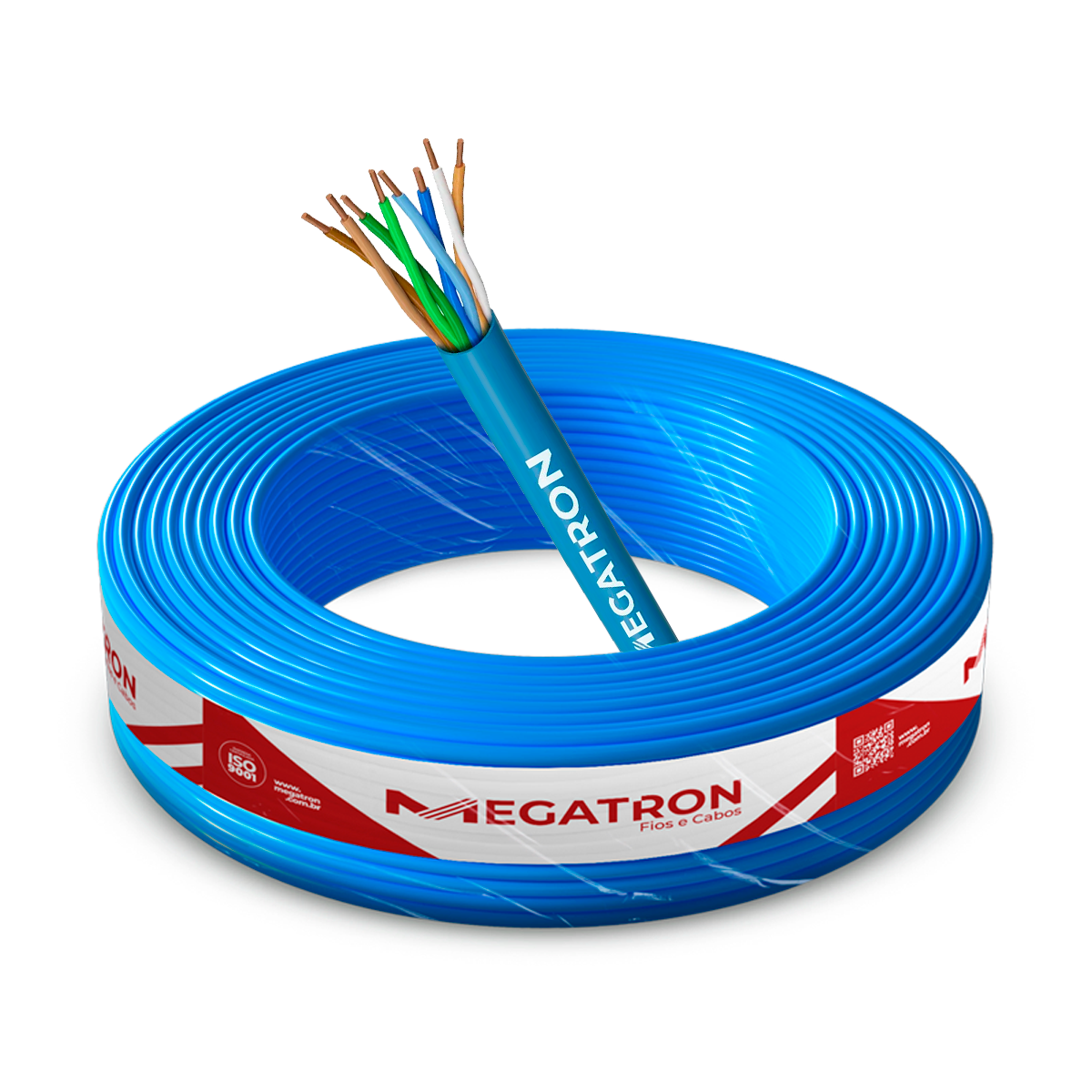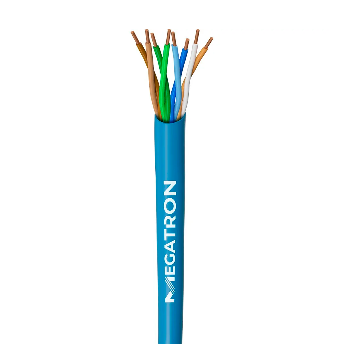 O Cabo CAT5E Megatron é formado por 4 pares de cobre com isolamento polietileno de alta densidade, garantindo resistência e qualidade na transmissão dos sinais. Identificado pelas cores azul/azul claro, laranja/branco, marrom/marrom claro, verde/verde claro, é protegido por revestimento externo em PVC, que oferece durabilidade e resistência térmica de até 70 °C.