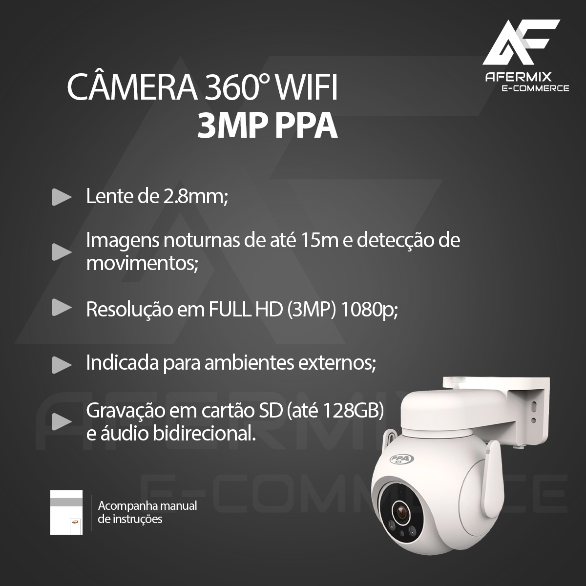Câmera Inteligente 360° Movimento On Wifi Externa 3mp PPA - Imagem 9
