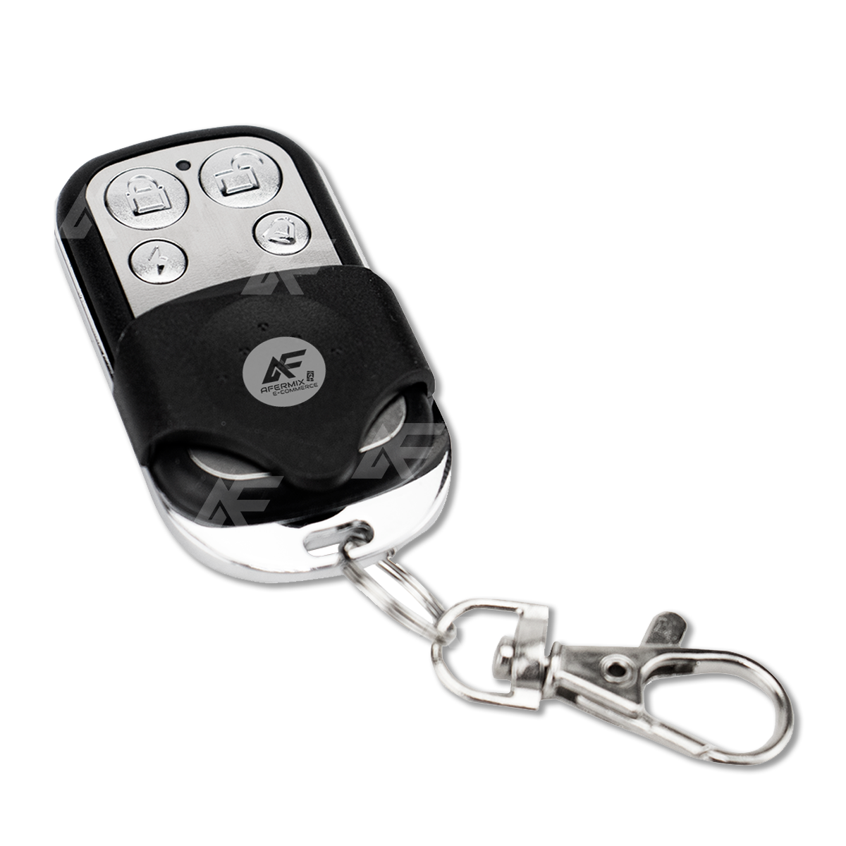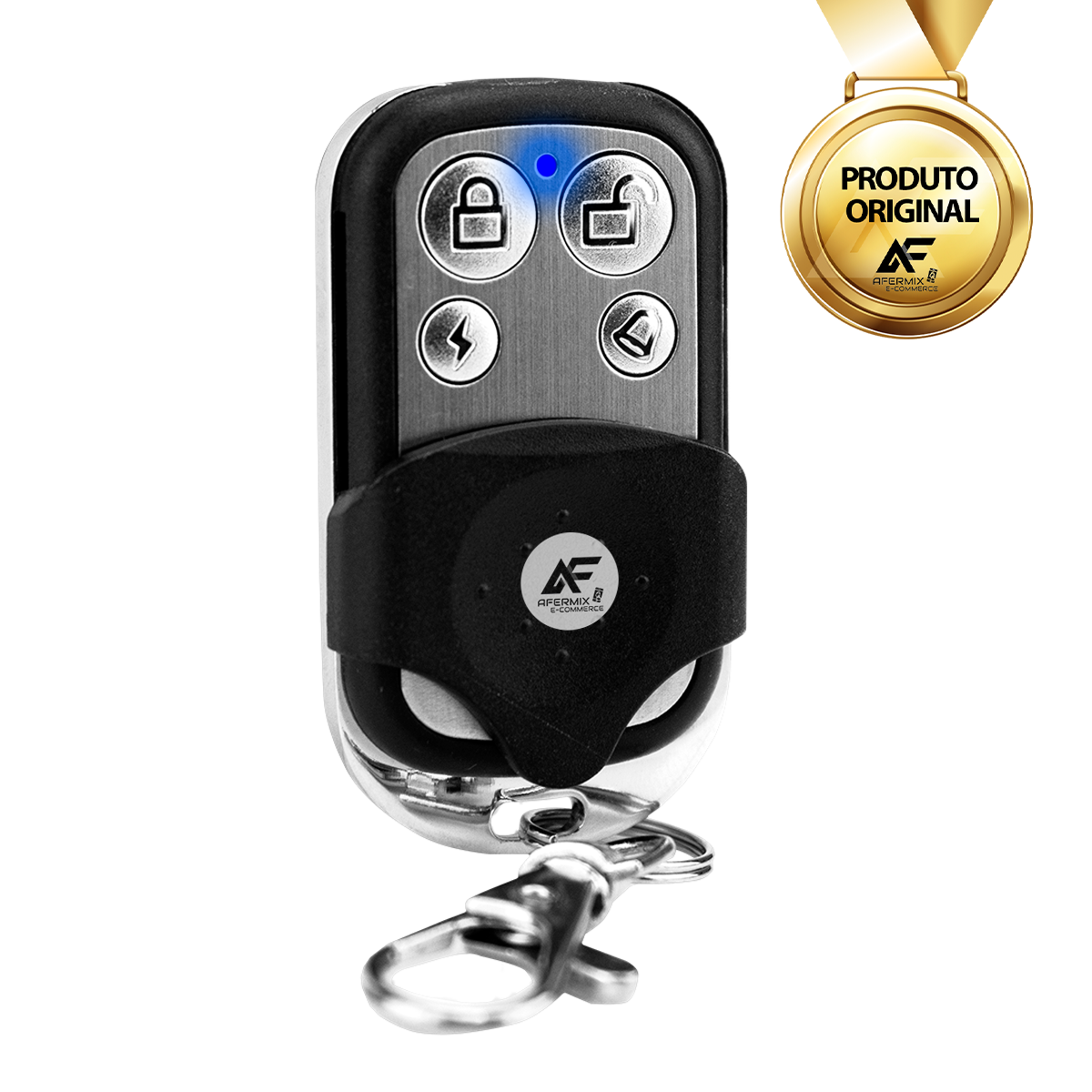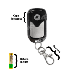 Possui 4 botões independentes (um botão para o portão, outro botão para o alarme, outro botão para acender a luz da garagem);