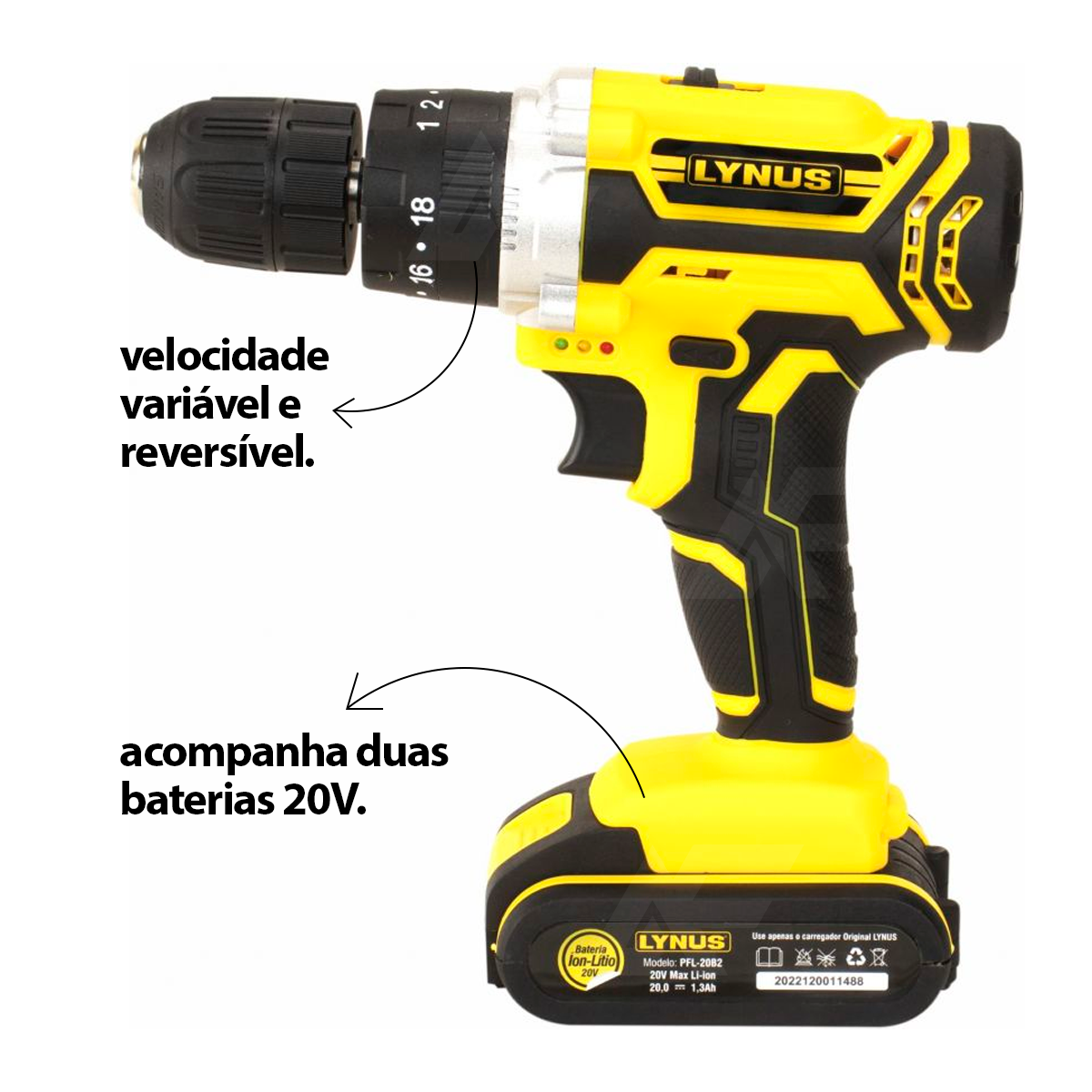 Furadeira e Parafusadeira PFL20B2 a Bateria 20V Lynus - Imagem 2