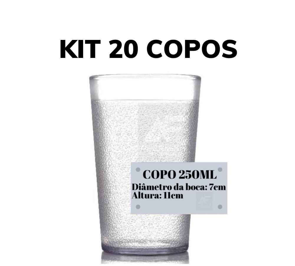 Kit 20 Copos Anti Impacto Policarbonato 250ml