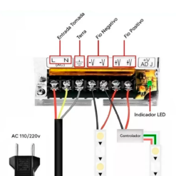 Produto Bivolt com corrente alternada que é utilizada em tomadas residenciais para 12V;