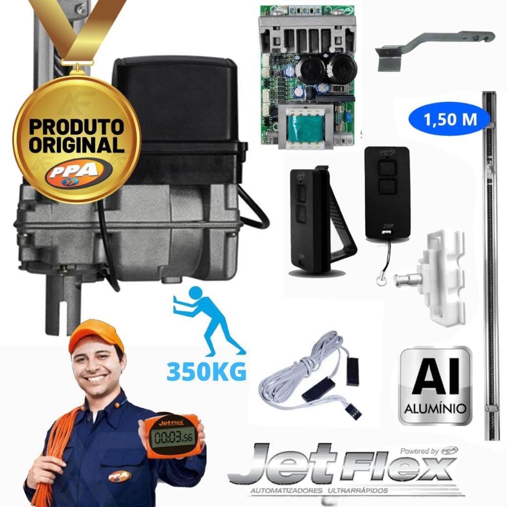 O automatizador BV HOME JETFLEX é indicado para portões basculantes residenciais de até 350 kg, podendo fazer até 40 ciclos (abertura e fechamento) por hora com extrema rapidez e precisão. Possui trilho centralizado (acoplado no centro do motorredutor), podendo ser instalado em qualquer lado da folha do portão.