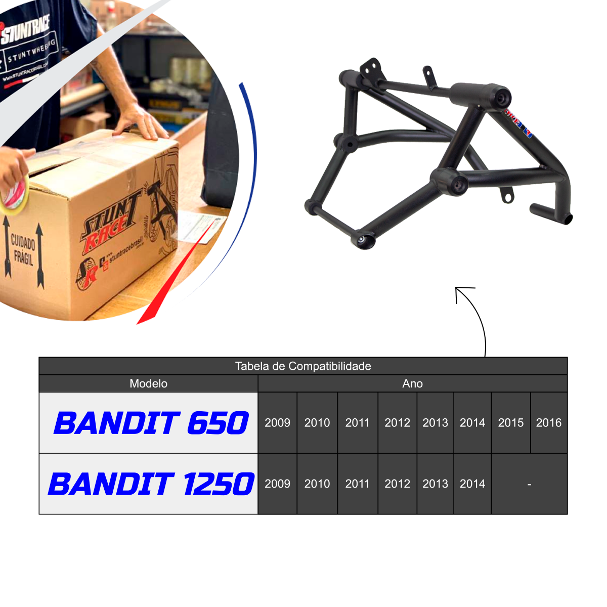 Não é necessário a alteração ou furo no chassi da moto para montar a peça. Matéria-prima selecionada, normalizada certificada e um rígido controle de qualidade são construídas em aço carbono e pintura epóxi.