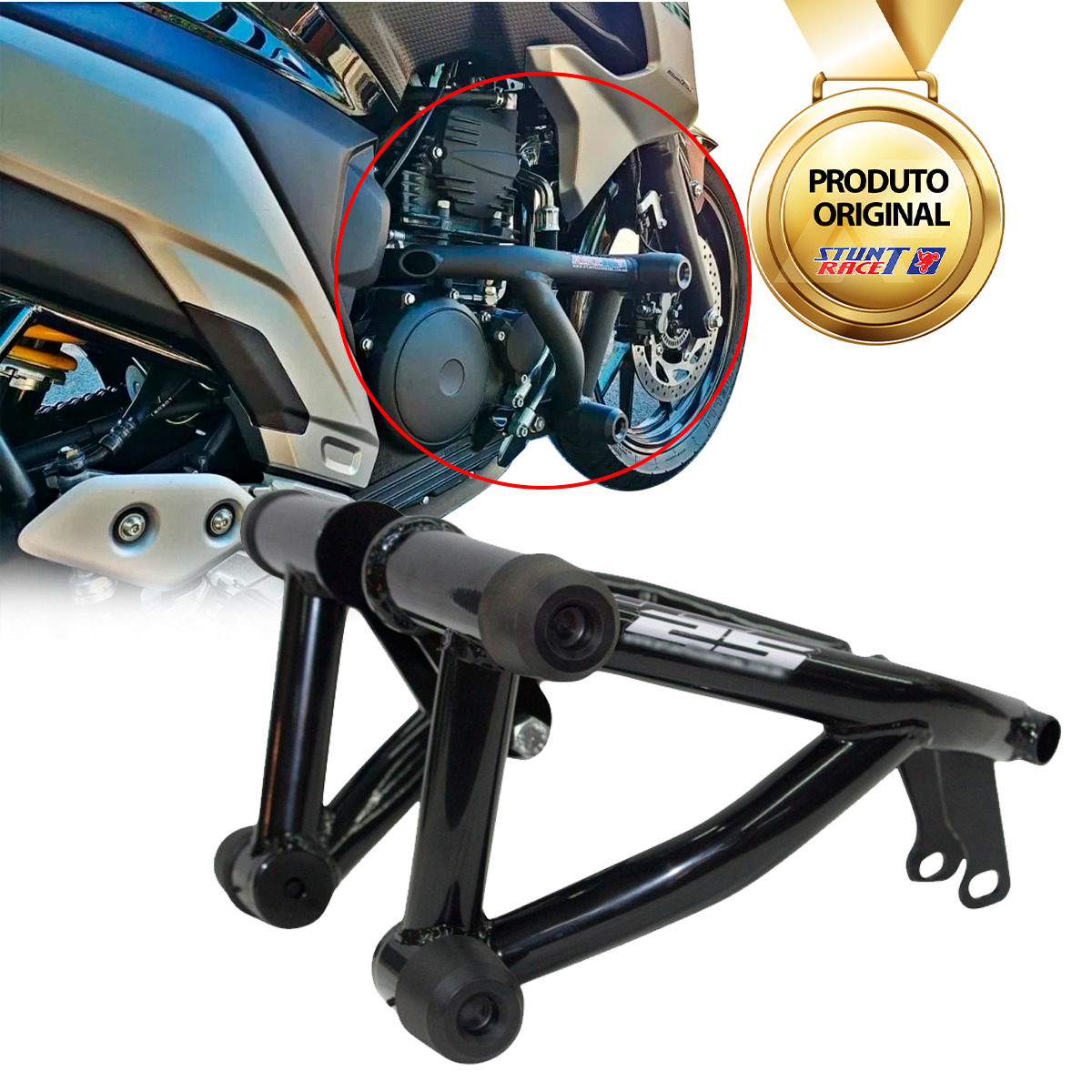 Um pequeno investimento que oferece uma grande economia; os protetores da marca Stunt Race Brasil possuem a mais avançada tecnologia de absorção de impacto do mercado, com pontas feitas em Nylon e substituíveis após a queda da moto.