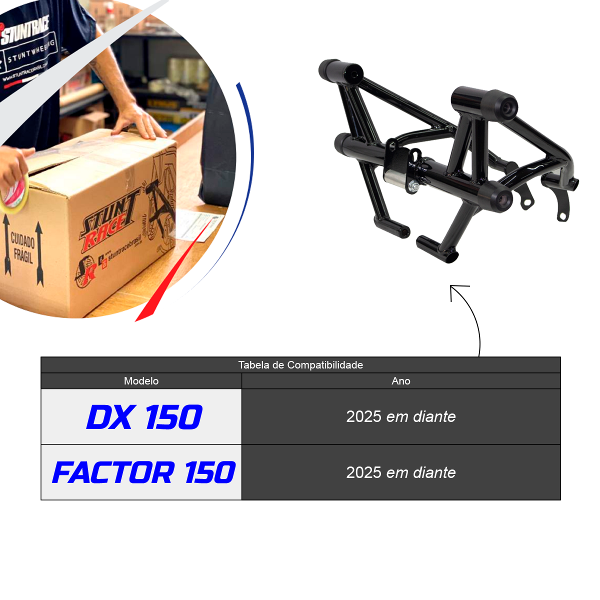 Não é necessário a alteração ou furo no chassi da moto para montar a peça. Matéria-prima selecionada, normalizada certificada e um rígido controle de qualidade são construídas em aço carbono e pintura epóxi.