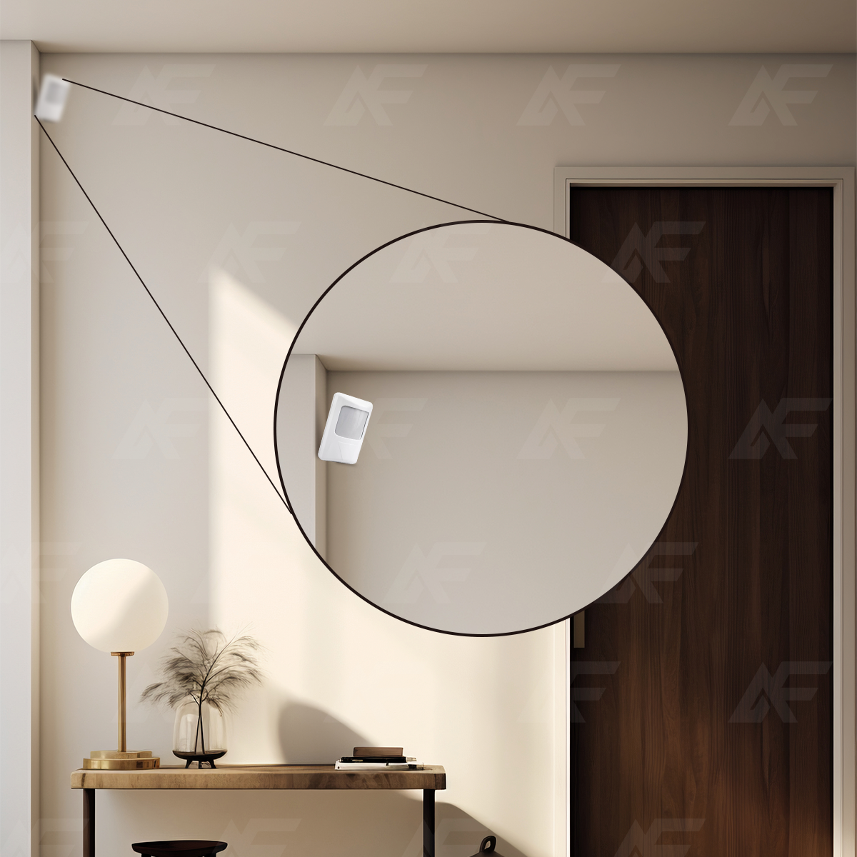 Sensor passivo com fio, para uso interno;