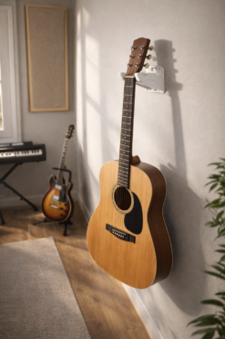 Organize e valorize seu instrumento com este suporte de parede, desenvolvido para oferecer segurança, praticidade e visual moderno. Ideal para músicos que querem proteger o violão e ao mesmo tempo deixá-lo em destaque no ambiente.